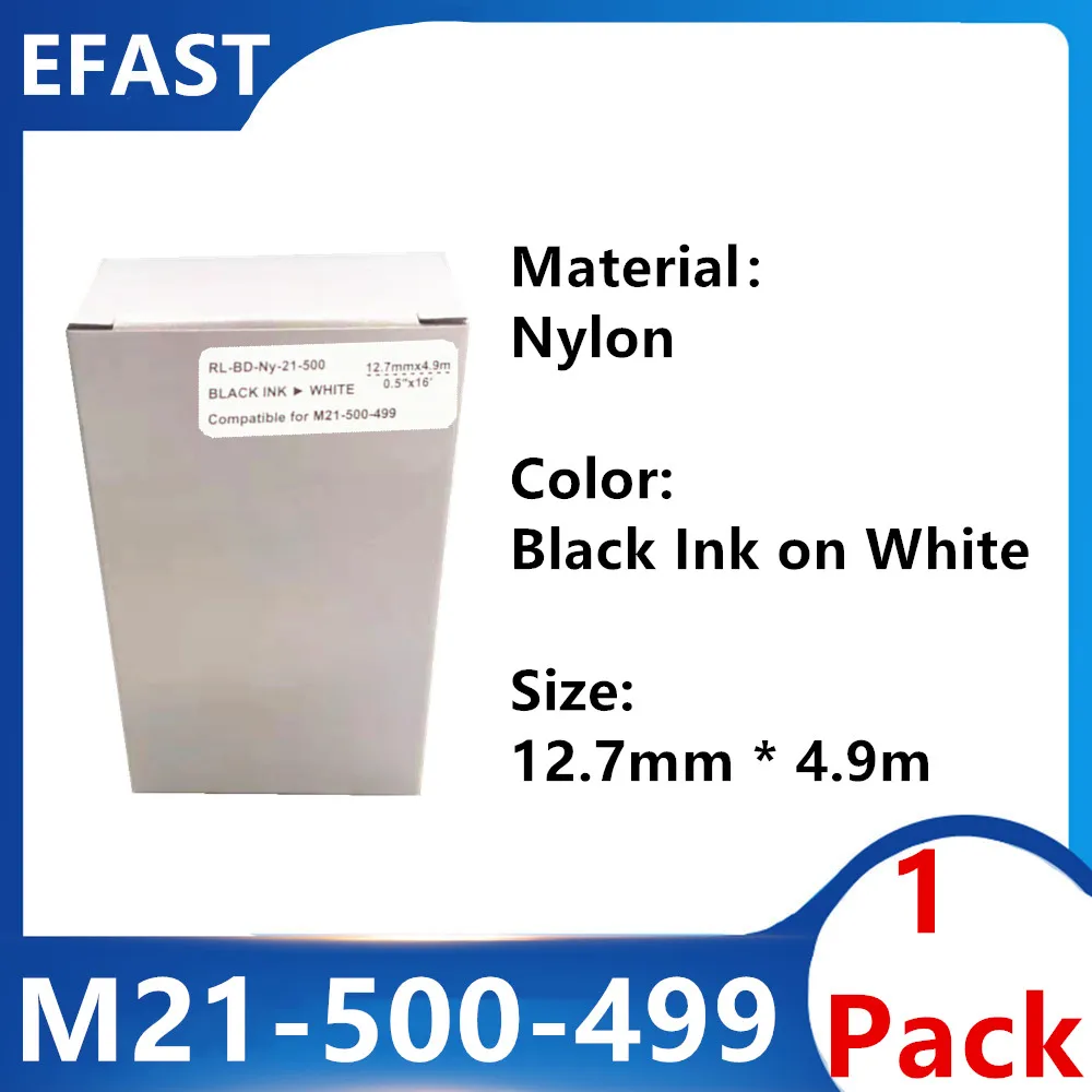 1 Pack M21 500 499 Nylon Label Ribbon For BMP21 PLUS Printer Black On White M21-500-499 12.7mm * 4.9m