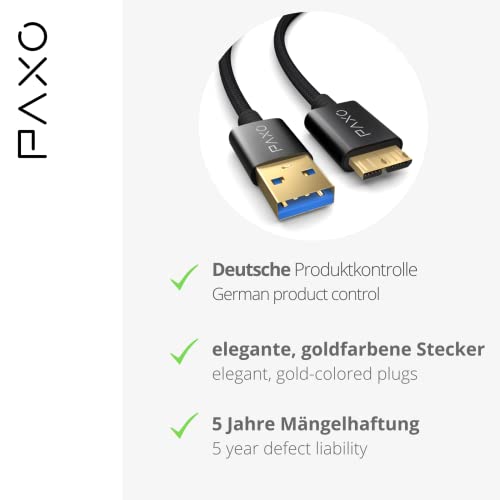0.5m Nylon USB MICRO USB 3.1 (USB 3.0) Cavo per disco rigido, 5Gbit/s, cavo USB HDD, cavo dati, cavo di ricarica nero, USB A maschio a Micro B maschio