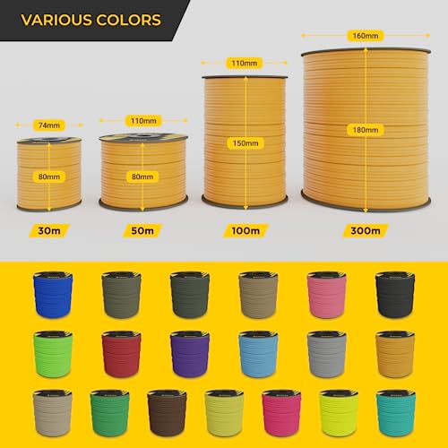 ✅ [Bobine affidabili ed ecologiche] - Il forte fissaggio non consente la rottura della bobina e ottieni Nylon Paracord 550 in una comoda confezione da 30 m. La bobina è realizzata in cartone riciclato e può essere riutilizzata o smaltita in modo ecologico.
