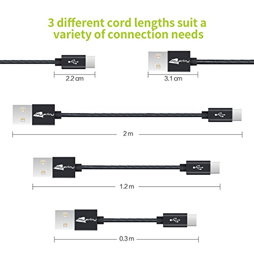 Type C cavi dati 3 confezione (0.3m+1.2m+3m ) per soddisfare tutte le esigenze quotidiane,18 mesi di garanzia