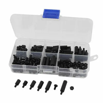 180 Pcs M3 Nylon Hex Spacers Screw Nut Stand-off Plastic Assortment Kit Black