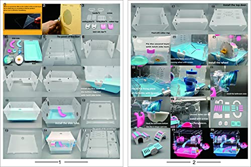 Accessori completi per gabbia per criceti: la gabbia e l'habitat per criceto sono completamente equipaggiati di scivolare per criceto, ponte arcobaleno, bottiglia d'acqua, casa per criceti, ciotola per nutrire criceti, seesew, bagno esterno. Realizzato in materiale acrilico di prima qualità, ecologico per animali domestici, impermeabile e durevole.