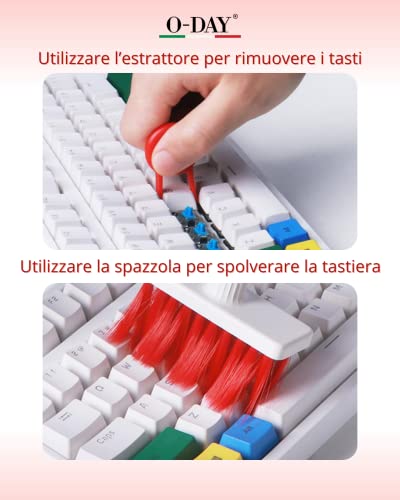 ✅KIT PULIZIA 5 IN 1: Il nostro pulisci tastiera pc o-day con setole in nylon, spugna cilindrica, pennello ad alta densità, punta in metallo ed estrattore per tasti è pensato per la pulizia quotidiana e profonda dei tuoi dispositivi portatili.