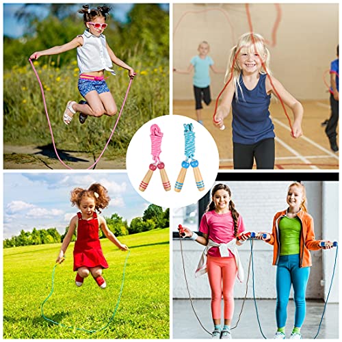 【Bambini con la corda per saltare】 2 Pezzi Questa classica corda per saltare con manico in legno è adatta per bambini, attrezzature per il fitness per bambini allo stesso tempo per aiutarli a sviluppare grandi capacità motorie e mantenersi in forma.