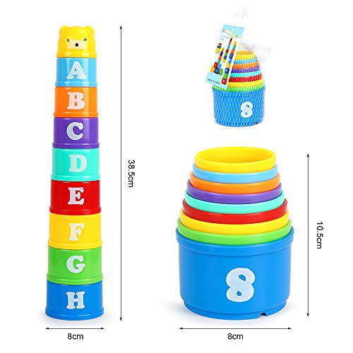 ✔ Tazze colorate da impilare. Ogni tazza ha un numero diverso, con numeri (1-8) e inglese (A-H), e hanno colori diversi. I colori sono molto belli e forti. Le tazze hanno piccoli fori sul fondo. Sono quindi adatti anche per la vasca da bagno e come giochi di sabbia.