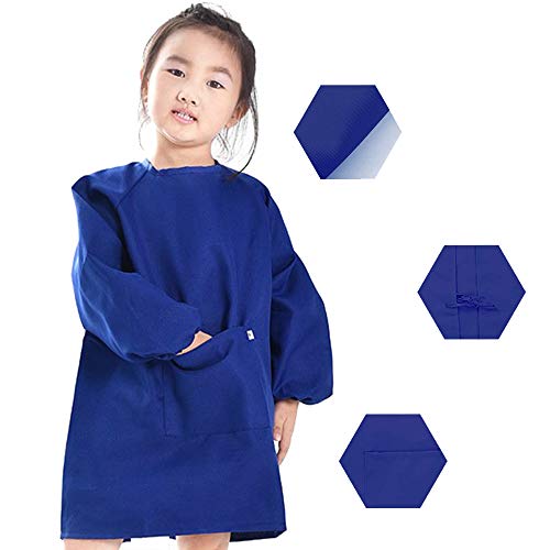 O-Kinee Grembiule da Pittura Bambini, Grembiulino Scuola Maniche Lunghe per Bambini, Grembiule da Gioco - Pittura, Cucina, Scuola, casa, Poliestere (Blu) (12-16 Anni)