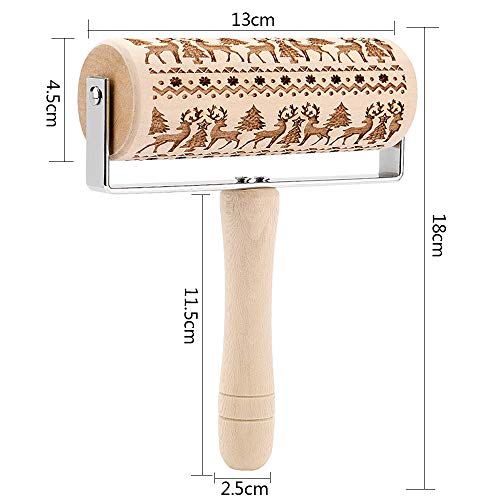 O-Kinee Natale in Legno Rolling Pin per Biscotti e Pizza Utensile da Cucina in Rilievo di Legno Inciso a Forma di mattarello Inciso di Natale, Goffratura Mattarello, Mattarello di Pane di Pasta