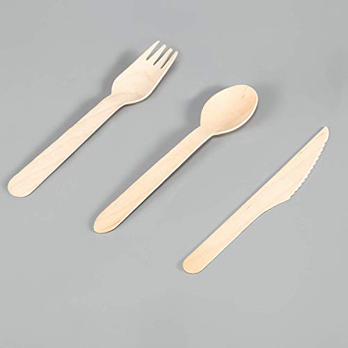 O-Kinee - Set di 200 Posate USA e Getta in Legno, ecologiche, per grigliate, Compleanni