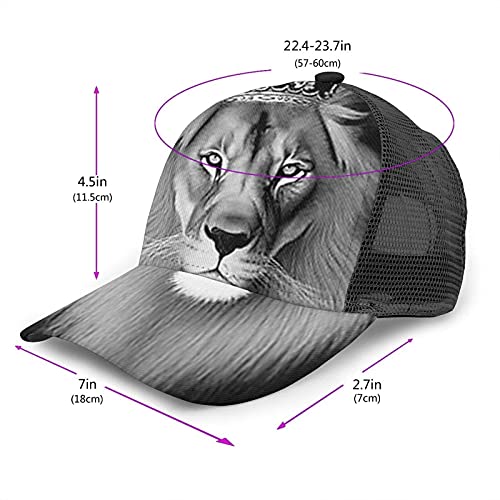 Oaieltj, berretto da baseball unisex da uomo e donna per bambini, in rete regolabile, cappello da sole alla moda, Fierce Re Leone Bianco e Nero Corona, Etichettalia unica
