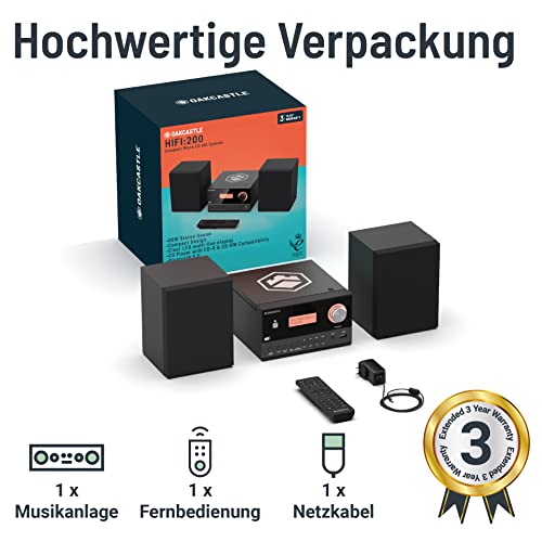 Oakcastle HIFI200 Sistema stereo Micro HiFi compatto con CD, DAB+ e Bluetooth I Audio stereo da 60 W I Radio I USB I MP3 I AUX I Telecomando