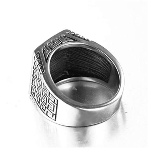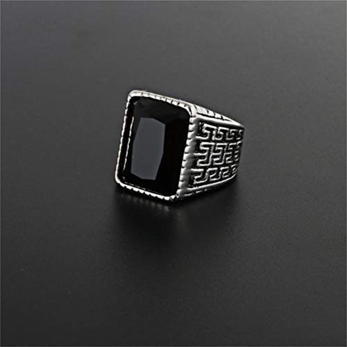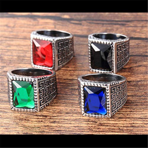 OAKKY Uomo Acciaio Inossidabile Annata Grande Muraglia Modello Multi-color Piazza Pietra Preziosa Anello Argento Nero Taglia 27