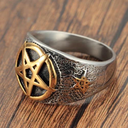 OAKKY Uomo Acciaio Inossidabile Annata Pentagramma Anelli Argento Oro Pentacle Banda Taglia 17