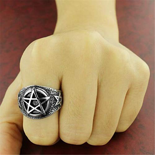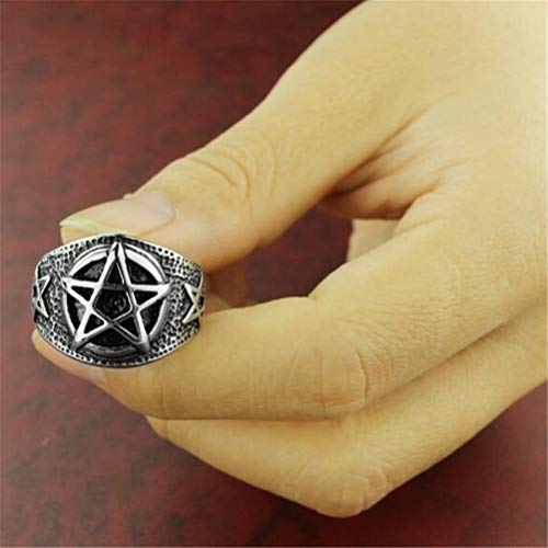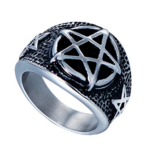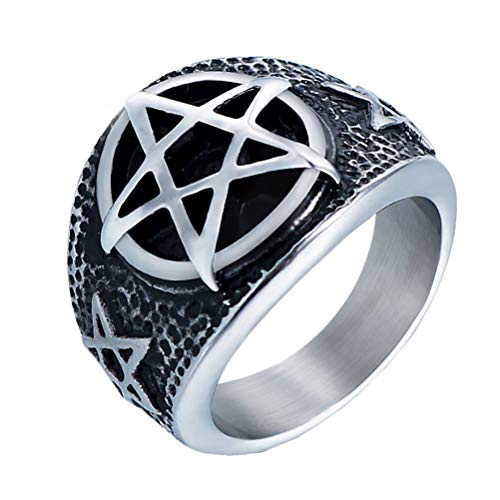 OAKKY Uomo Acciaio Inossidabile Annata Pentagramma Anelli Argento Nero Placcato Pentacle Banda Gotico Motociclista Punk Rock Taglia 14