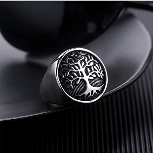 OAKKY Anello Sigillo Albero Vita Unico Tono Nero Argento Uomo Acciaio Inossidabile, Taglia 35
