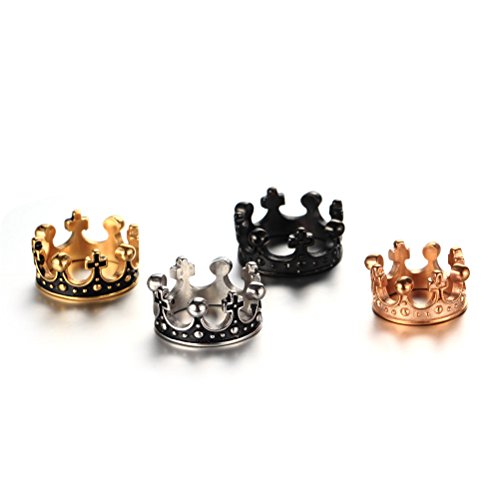 OAKKY Uomo Annata Re Reale Corona Anello Acciaio Inossidabile Croce Band 4 Colori, Nero Taglia 27