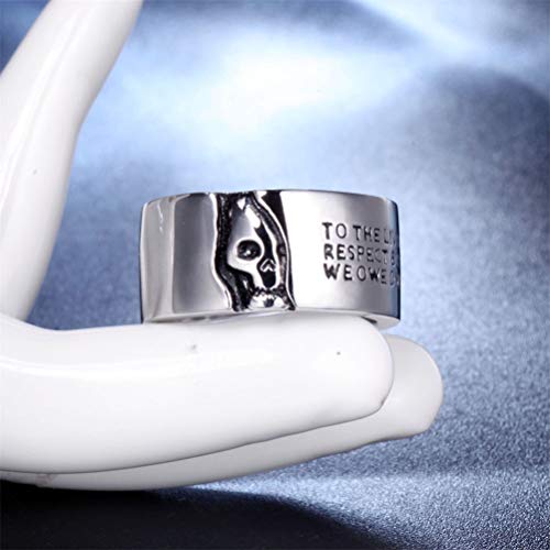 OAKKY 10MM Cranio Fantasma Testa Marcatore Anelli Uomo Acciaio Inossidabile Cool metà Viso Motociclista Bands Inciso Lettere Argento Black Taglia 25