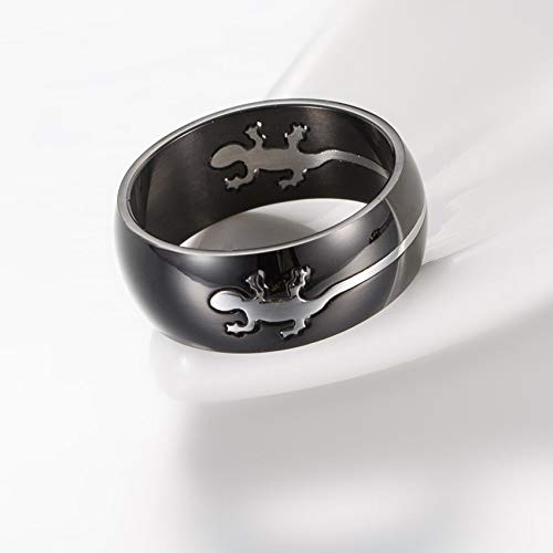 OAKKY Creativo Fortunato Tribal Geco Amuleto Anelli Uomo Acciaio Inossidabile Lucertola Geco Naso Crawler Band Argento Taglia 25