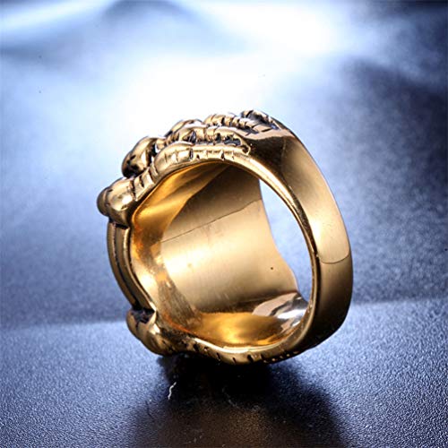 OAKKY Retro Gotico Drago Artiglio Male Demonio Cranio Bulbo Oculare Anelli Uomo Acciaio Inossidabile Viola Occhi Oro Placcato Taglia 19
