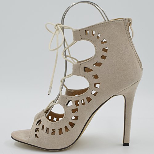 OASAP Fashion Pointed Toe Solid Strappy Lace Up Stiletto Heels, Apricot EURO37/US6/UK4