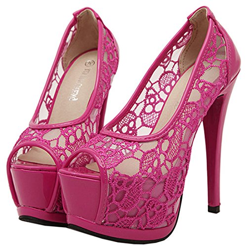 Oasap Lace High Slim Heel Peep Toe Platform Pumps