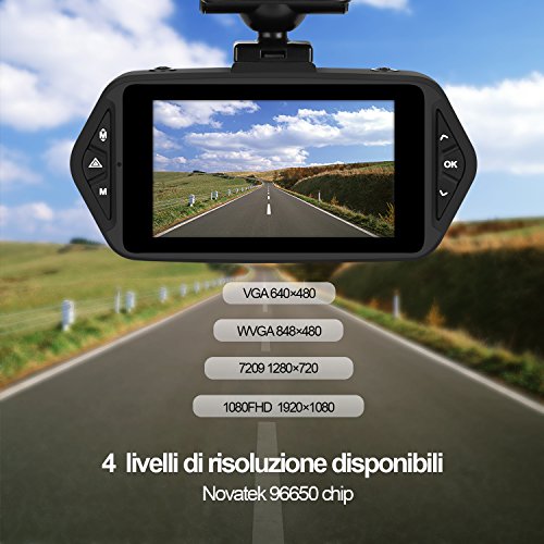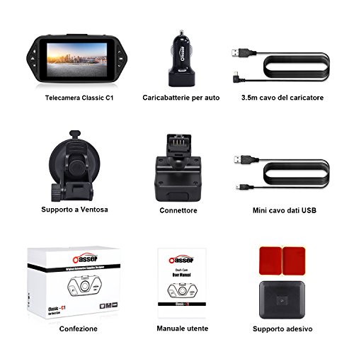 Oasser Dash Cam Telecamera per Auto Classic C1 WDR Full HD 1080P G-Sensor 2.7" Schermo LCD Angolo di Ripresa 170°Super Visione Notturna