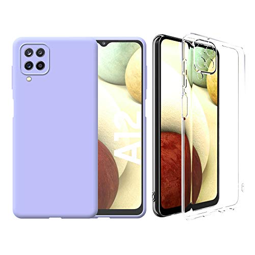 Obastyle Cover per Samsung Galaxy A12 5G [2 pezzi],Custodia Morbida e Flessibile con Finitura Opaca,Custodia Trasparente in TPU da 1.5mm,Soft Touch e Antigraffio (Lilla)