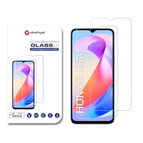 Obastyle Pellicola [2 Pezzi] Vetro Temperato per Honor X6a (6.56 Pollice), Durezza 9H, Ultra Trasparente e Effetto Antimpronta, AntiGraffio e Infrangibile(Honor x6A)