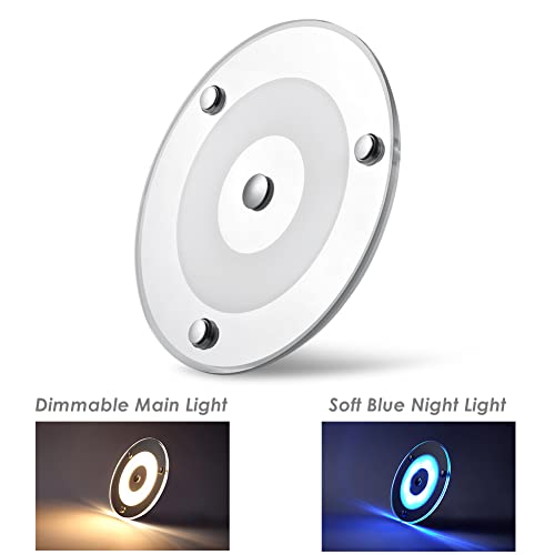 Obeaming Lampada da Soffitto LED 12V Camper Dimmerabile Plafoniera 4.5W 120mm 24V 400LM con 3000K/Luce Blu Interruttore tattile per Auto Caravan Barca Yacht illuminazione Interna
