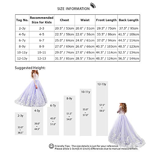 ✤ ABITO ELEGANTE: Abito da festa formale in tulle per ragazze dai 2 ai 13 anni. A-line, O collo, manica lunga, impunturata in tulle, decorata con pizzo floreale. Questo fantastico vestito ti aiuterà a diventare il punto focale della festa.