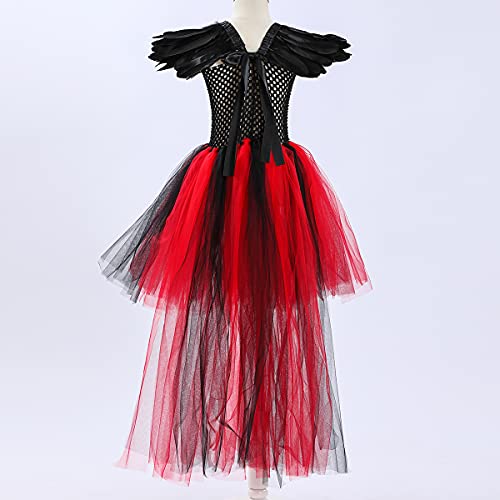 OBEEII Malefica Costume per Bambina Regina Malefica Tutu Abito per Halloween Cosplay Carnevale Tulle Vestito, Cerchio, Capelli Ali 3pcs Outfit Rosso 4-5 Anni