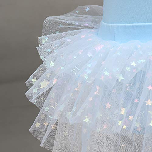 ✤✤ Abito da ballo danza per ginnastica body da balletto diviso per bambini, pagliaccetto senza maniche e gonna tutu in tulle soffice con motivo a stelle, set di 2 pezzi.