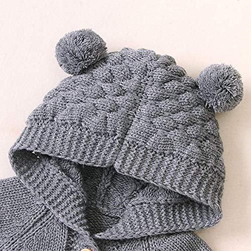 OBEEII Tutina per neonati, lavorata a maglia, con cappuccio, per bambini, con orecchio, maglione invernale, grigio., 12-18 Mesi