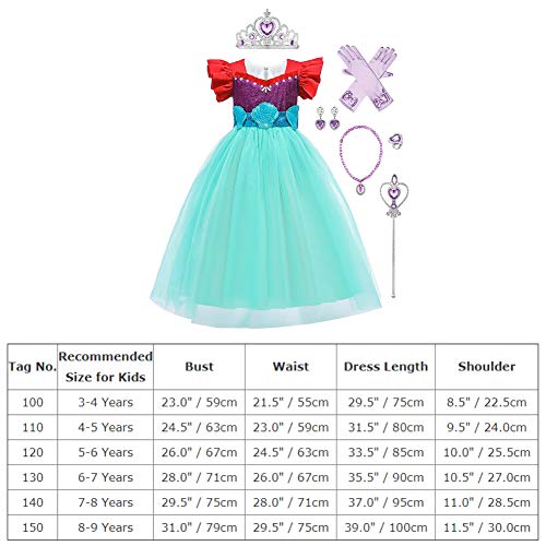 OBEEII - Vestito da bambina a forma di sirena, per travestimento da sirena, carnevale, Halloween, cosplay, festa, compleanno, abbigliamento Mermaid05 8-9 Anni