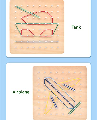 OBEST Geoboard in Legno Gioco Educativo Montessori con Immagini Geometriche ed Elastici, Set di Giocattoli per Bambini, Esercizio, Regalo Puzzle Pratico