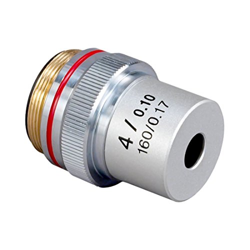 Obiettivo DIN 45 mm acromatico 4 x/0.10 per microscopio biologico. Obiettivo acromatico 4 x/0.10 presentato in contenitore di plastica robusta. Questo obiettivo di dimensioni di internacionalización standard (DIN/JIS), è adatto per la maggior parte di microscopios più comuni. Tutti i componenti ottici con un trattamento antimuffa e sigillature anti-reflexivos