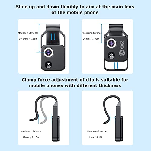 AMPIA COMPATIBILITÀ: questo è un microscopio appositamente progettato per telefoni cellulari, leggeri e portatili, applicabile a tutti i modelli tradizionali sul mercato e ampiamente utilizzato per IOS, per smartphone Android.