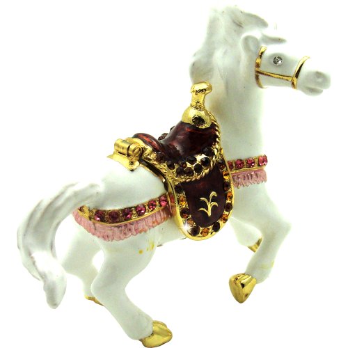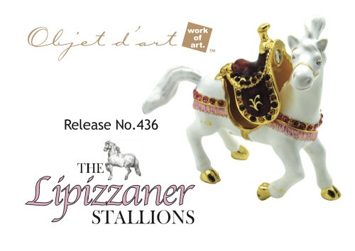 Objet d' Art Release # 1.107,4 cm The Lipizzaner Stalloni White Ceremonial Cavallo con Sella Handmade Jeweled Enameled Metal Trinket Box