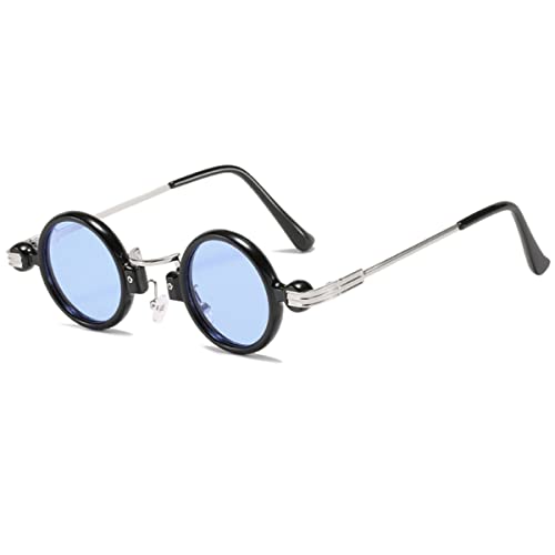 OBOBVCK Occhiali da sole tondi Steampunk Vintage Retro con telaio in metallo per le donne degli uomini (Blue)