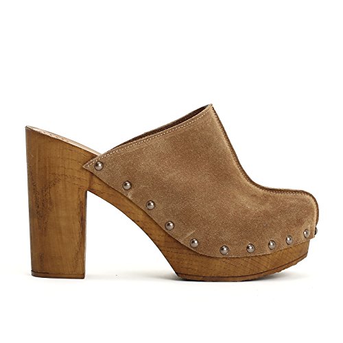 Obsel: by Scarpe&Scarpe - Sabot con Borchie, in Camoscio, con Tacco 11 cm - 35,0, Cuoio