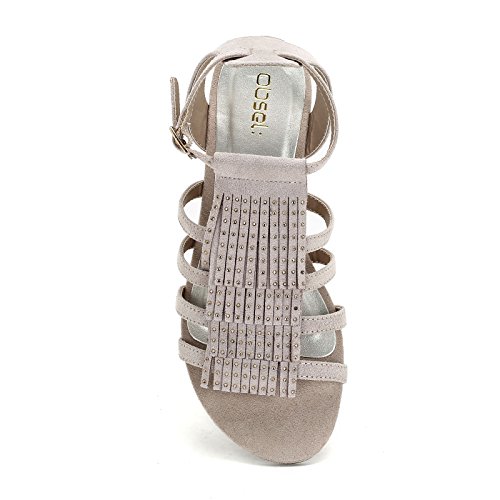 Obsel: by Scarpe&Scarpe - Sandali Bassi con Frange e Strass - 37,0, Beige