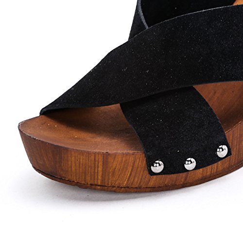 Obsel: by Scarpe&Scarpe - Sandali Alti con Incrocio e Borchie Laterali, in Camoscio, con Tacco 9 cm - 37,0, Nero
