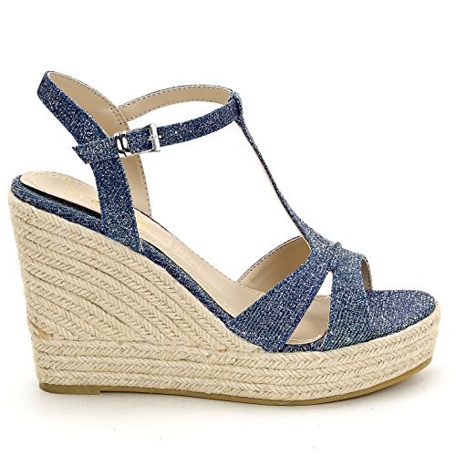 Obsel: by Scarpe&Scarpe - Zeppe in Corda con Tessuto luccicante - 40,0, Blue
