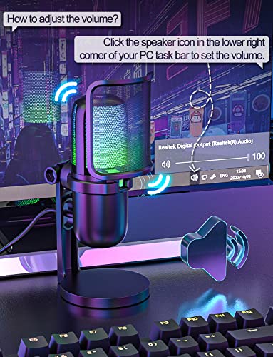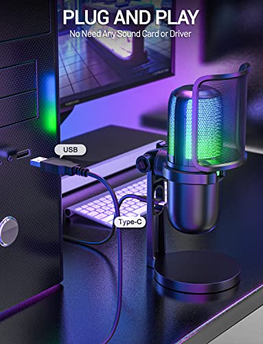 OBVHNUA USB Microfono per PC Gaming PS5, Microfono a Condensatore RGB per Streaming Podcast, con Tocco Mute e Filtro Pop, Plug & Play