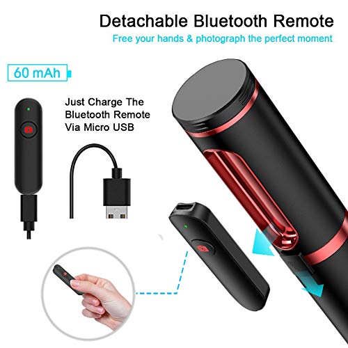 Controllo di distanza - dire addio a una "parte superiore del corpo" o "grande testa immagini. Telecomando Bluetooth, distanza fino a 10 mt. design rendono il treppiede più stabile per registrare video o Facetime con la famiglia o gli amici con il telecomando si combina con il treppiede in metallo.