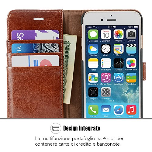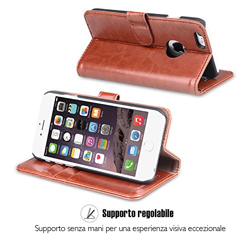 OCASE Cover iPhone 6S Plus[Portafoglio] [Pellicola Vetro temperato Schermo Inclusa] Custodia di Pelle Case Flip iPhone 6 Plus Garanzia a Vita, Marrone