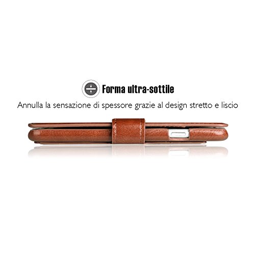 OCASE Cover iPhone 6S Plus [Portafoglio] [Pellicola Vetro temperato Schermo Inclusa] Custodia di Pelle Case Flip per iPhone 6 Plus l'Ultra Slim [Lightweight] - Marrone