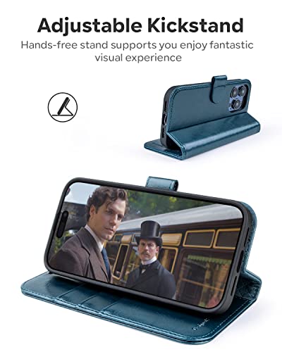 OCASE Custodia iPhone 14 Pro, Cover iPhone 14 Pro Interno TPU Antiurto Portafoglio [RFID Blocking] [Carta Fessura] [Supporto Stand] Custodie in Pelle per iPhone 14 Pro (6,1 Pollici) - Blu Pavone