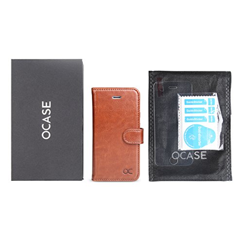 OCASE iPhone 5S Custodia, Custodia per iPhone 5 [pellicola protettiva in vetro temperato] [Premium Leder] [funzione leggio] [scomparto per carte di credito] [chiusura magnetica] Portafoglio in pelle per iPhone 5S SE 5 dispositivi