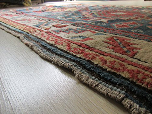 Occasione vecchio tappeto Kazak (Russia) 152 x 103 antico caucasico azzurro annodato orientale geometrico fatto a mano con certificato di autenticità (galicarpet)