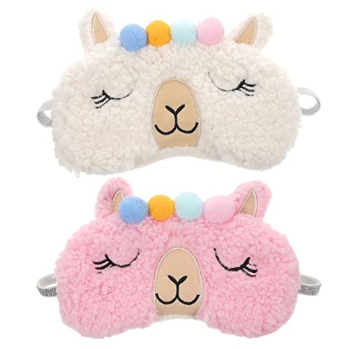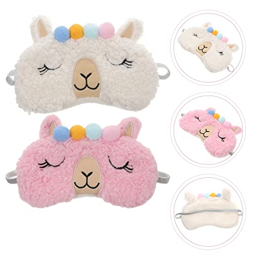 2pcs Eyemask animale carino Alpaga SleepingMask morbido peluche Blindfold Copre occhi Eyeshade per ragazze, donne, bambini viaggio notte notte partito bianco rosa